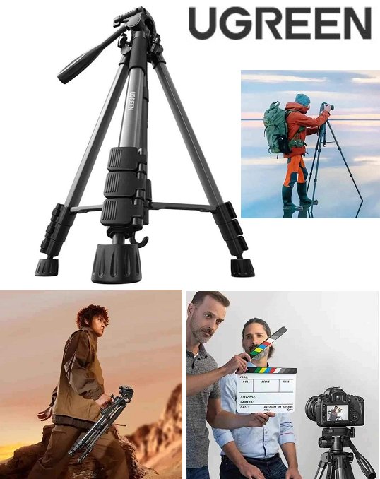 ugreen professional tripod for phone & camera DSLR with bag - 21"-68.8" - black (model: LP661-15187)