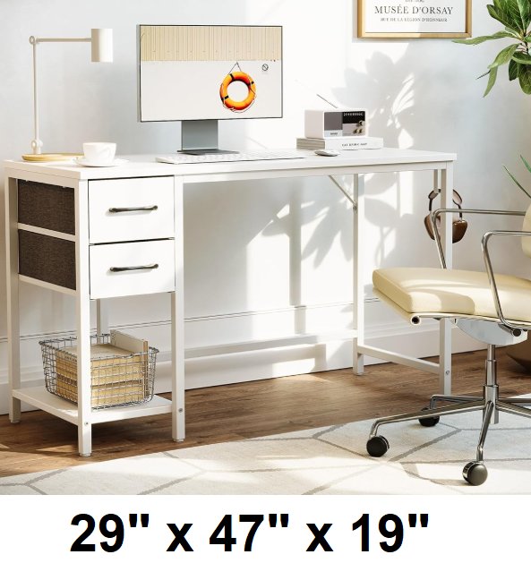 Cubiker simple modern style Computer Desk for Home Office with metal frame and fabric drawers - 40" x 29.5" x 19.6" - white (model: dlct)
