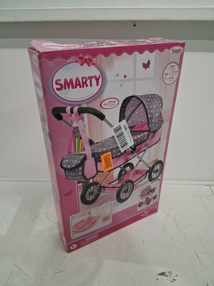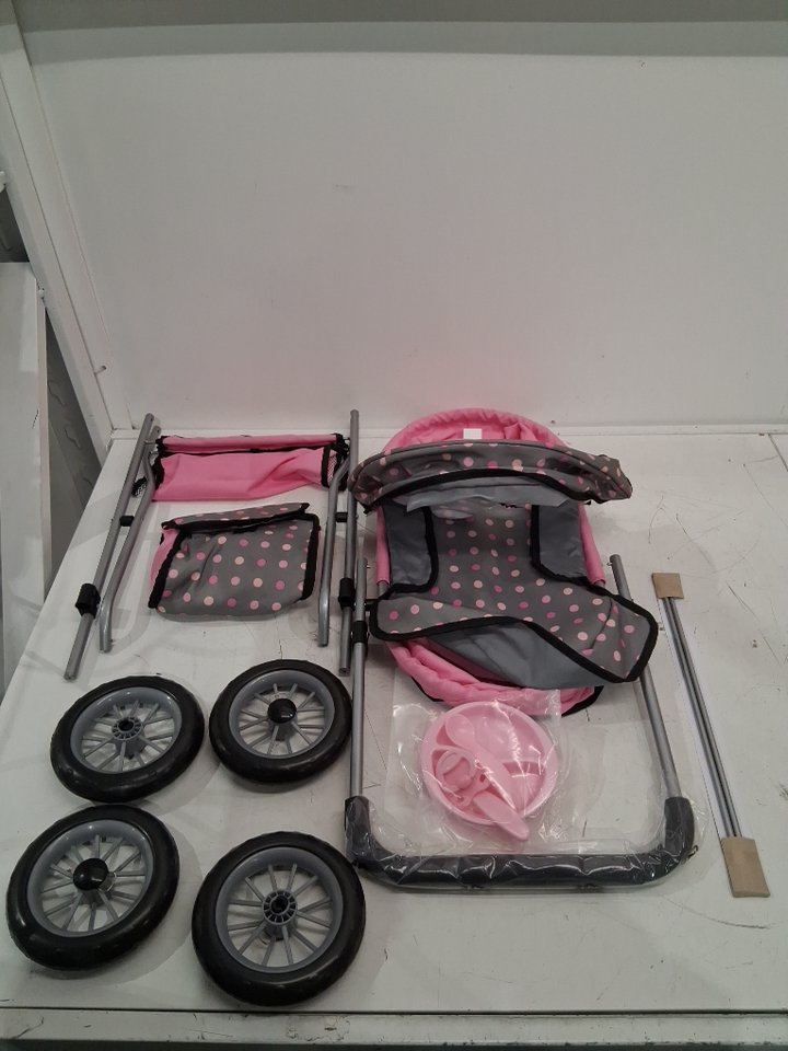 smartly bayer toy pram with accessories - 18" - pink polkadot (model: 12266AB)
