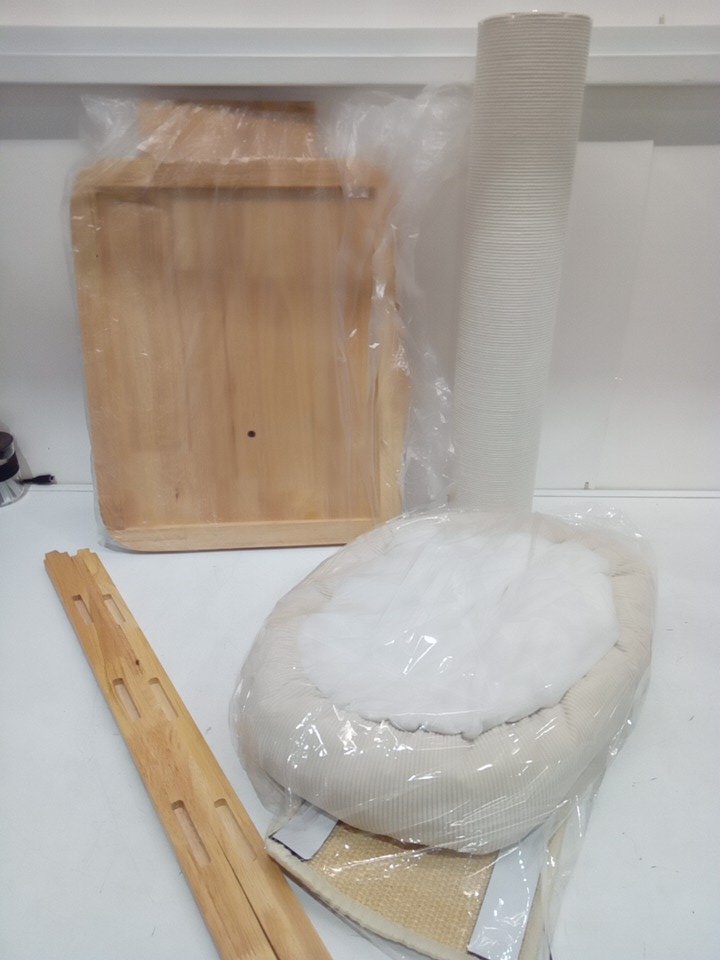 SHENGOCASE small Modern Natural Wood Cute Multifunctional Cat Tree Tower - 25.5" x 16" x 19" - natural