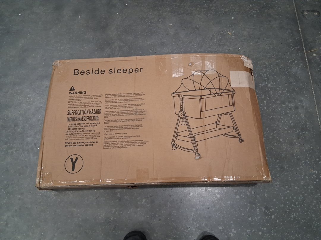Youluzhen 3-IN-1 Baby Bassinet Bedside Sleeper with Wheels and Mattress - 0-5M - GREY/BIEGE (MODEL: M001)