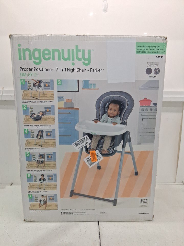 ingenuity 7-in-1 Proper Positioner High Chair - 45.5" x 24.5" x 35" - parker/grey (model-: 16792)