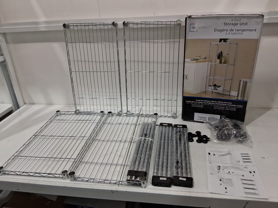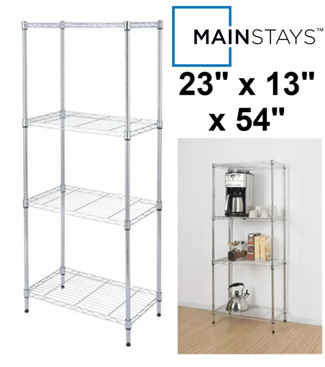 mainstays 4-tier steel storage shelf/unit - 23" x 13" x 54" - chrome (model: eh-suca-019)