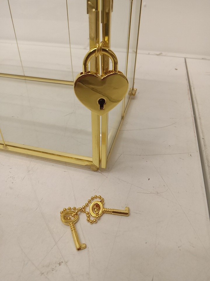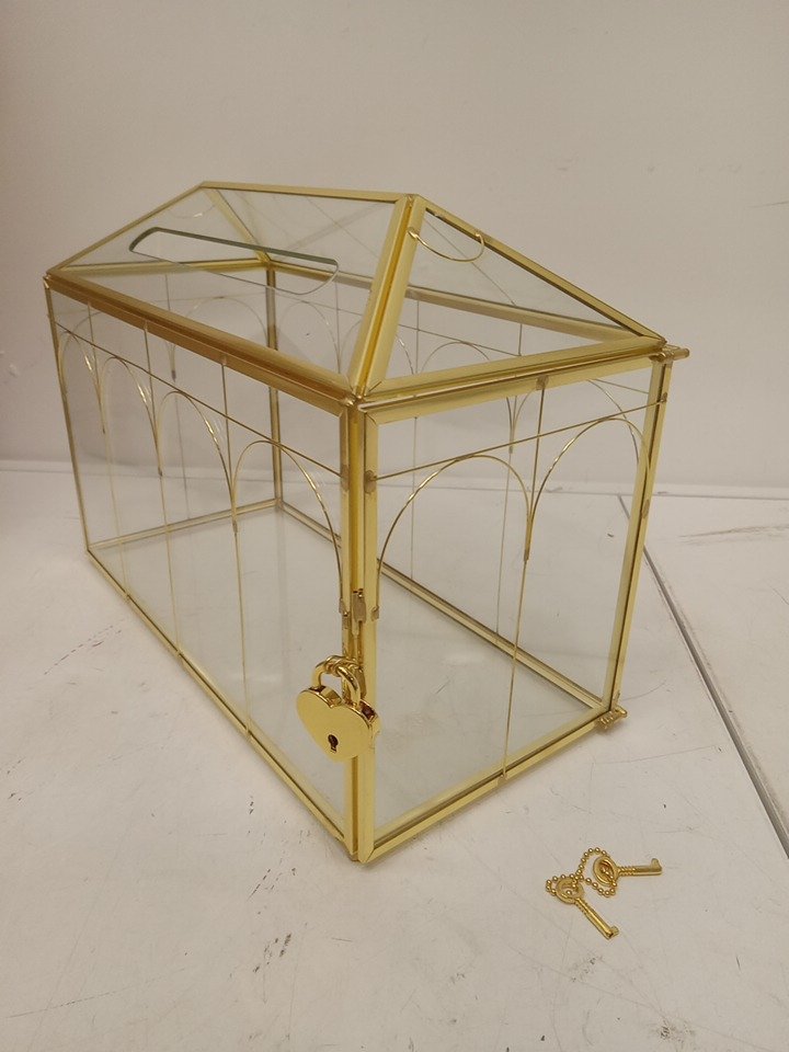 NCYP Geometric Glass Cards Box with Slot and Lock for Wedding Reception, Party Decor - 12.6" x 5.9" x 9" - Gold