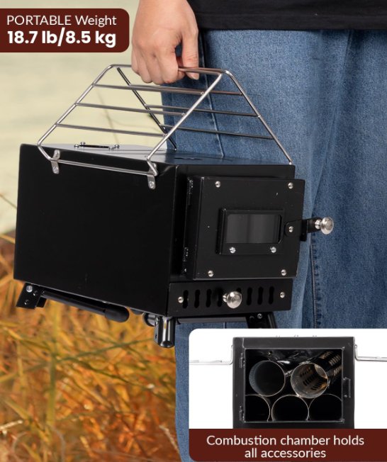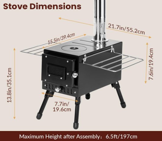 yrenz wood burning Portable Tent/camping Stove with Heat Control Stovepipe & Elbow pipe - 13.8" x 21.7" x 15.5" - black (MODEL: Z-360)