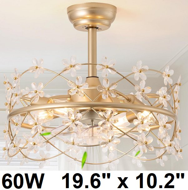 youngrender Flower Chandelier Crystal Ceiling Fan with Lights and Remote Control - 60W - 19.6" x 10.2" - Gold
