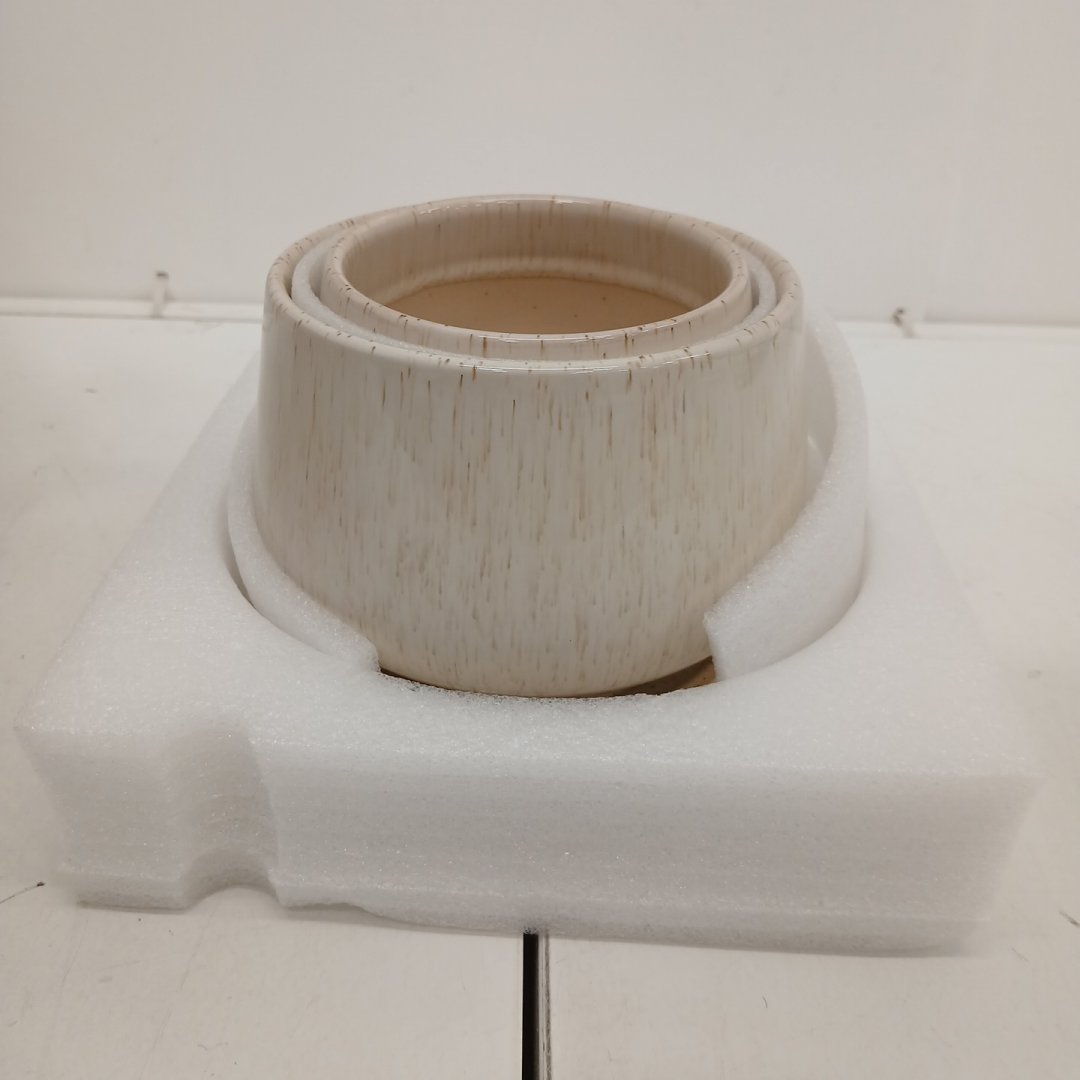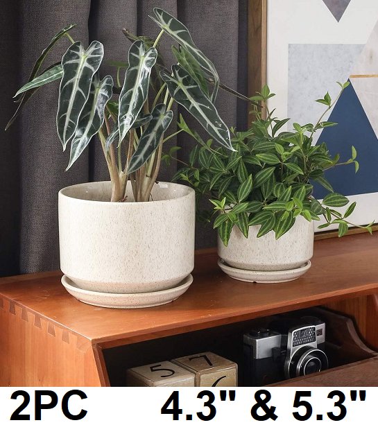 2PC LE TAUCI CERAMIC PLANT POTS, INDOOR PLANTER WITH DRAINAGE HOLD & MESH COVER - 4.3" & 5.3" - REACTIVE GLAZE BEIGE