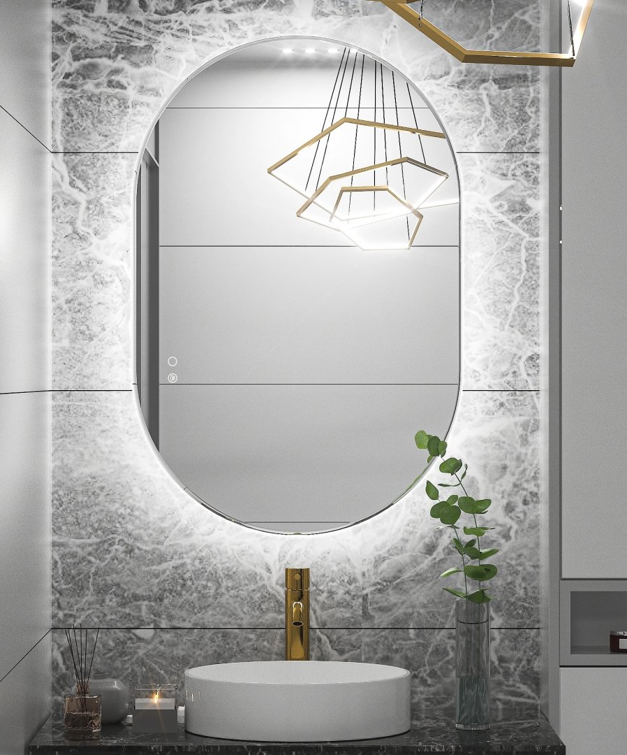 KeonJinn Backlit FRAMELESS Pill Shape LED Bathroom Mirror WITH ANTI-FOG - 24" X 36"