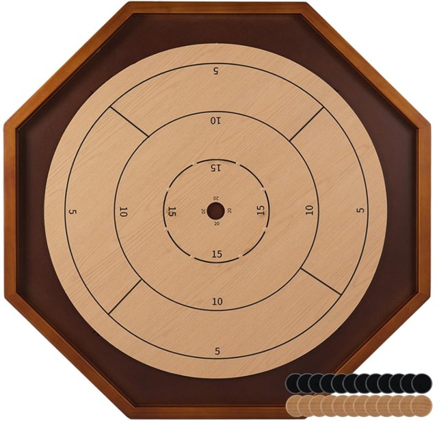 DELUXE WOODEN CROKINOLE BOARD-27"-brown/tan