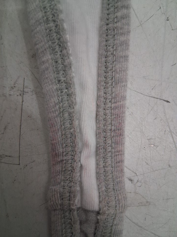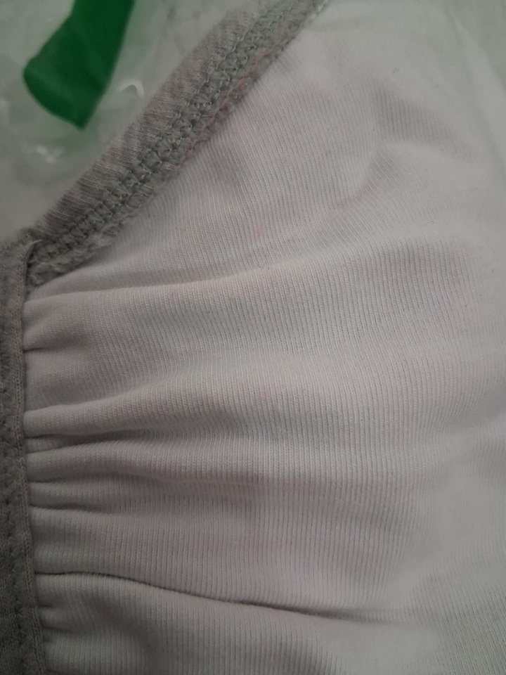 The grey bra has light red stains