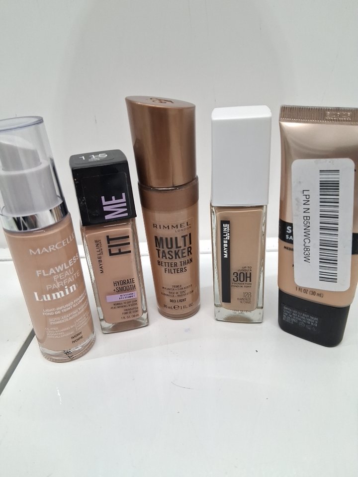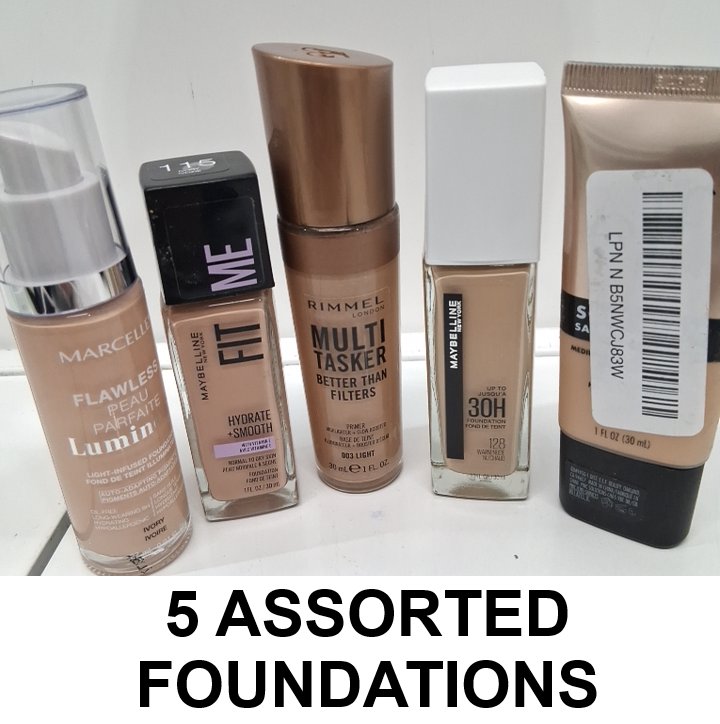 5 ASSORTED FOUNDATIONS - ASSORTED COLORS AND BRANDS