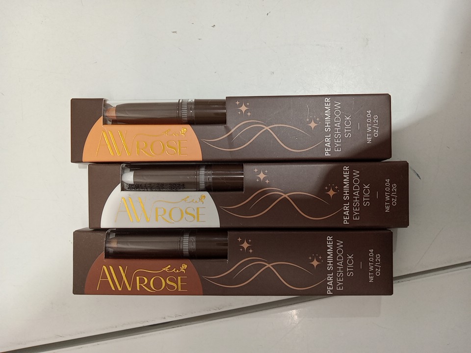 3PC AWRose Pearl Cream Shimmer Eyeshadow Stick - 1.2G each - assorted