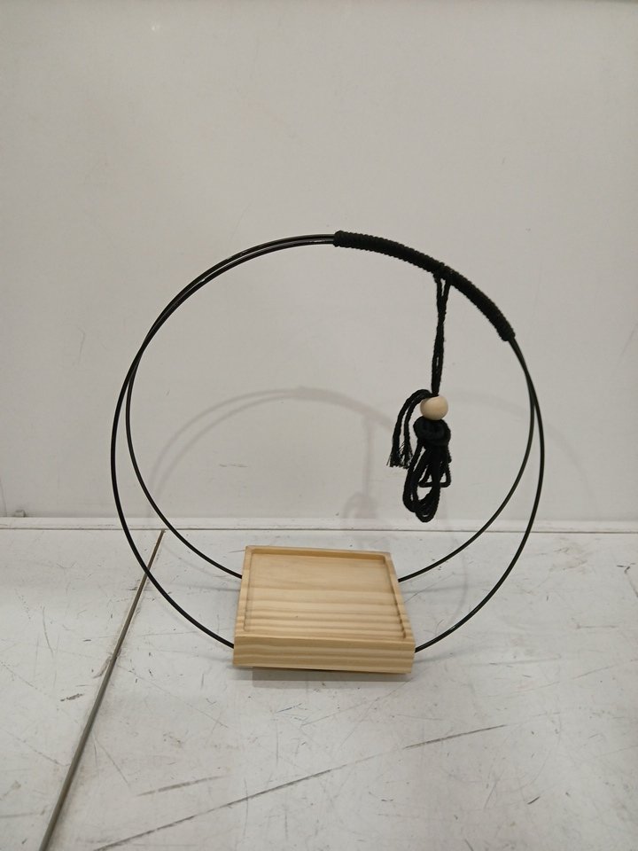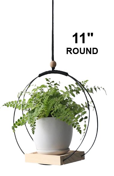 ABETREE Hanging Planter with Wood Base - 11" ROUND - BLACK/NATURAL