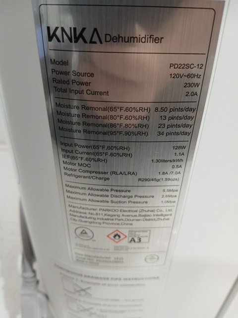 KNKA Dehumidifier for Basement with Drain Hose - 2500SQFT - WHITE (MODEL: pd22sc-12)