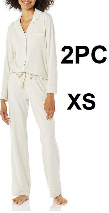2PC WOMEN'S AMAZON ESSENTIALS SOFT LONG SLEEVE BUTTON UP SHIRT AND PANTS PAJAMAS SET - extra small - white
