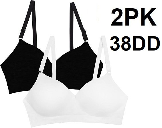 2PK WOMENS FRUIT OF THE LOOM SEAMLESS WIRE FREE PUSH UP BRA - 38dd - BLACK/WHITE (MODEL: FT640)
