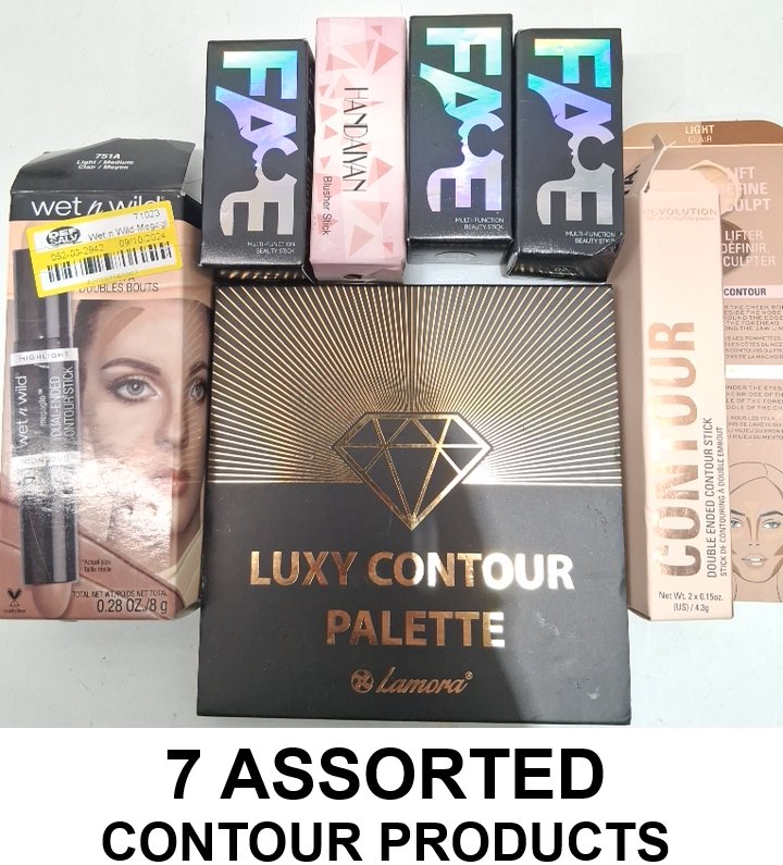 7 ASSORTED CONTOUR PRODUCTS - ASSORTED COLORS ANS BRANDS