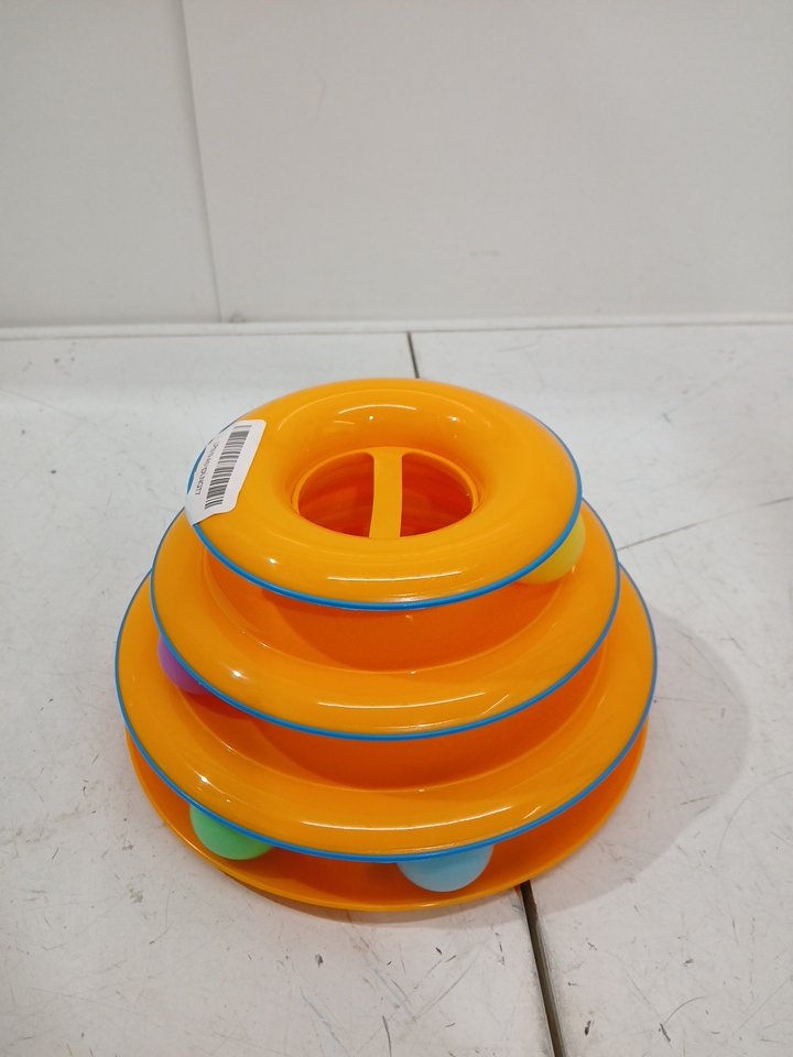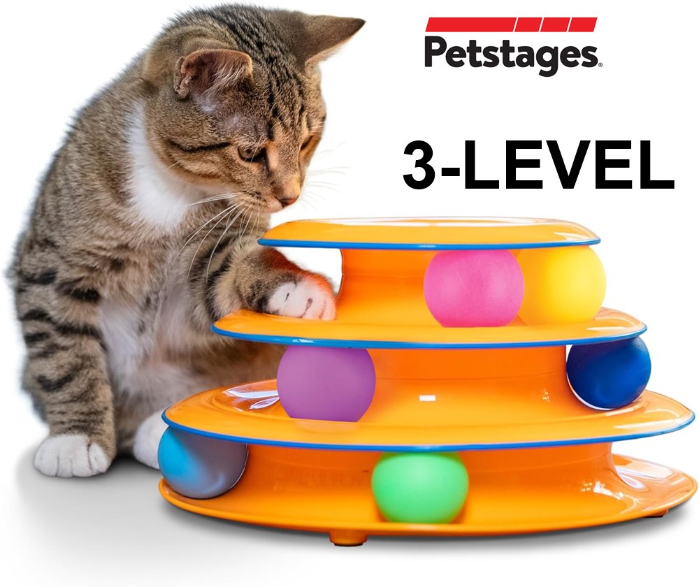 PETSTAGES TOWER OF TRACKS 3-LEVEL BALL SPINNING CAT TOY - ORANGE/BLUE