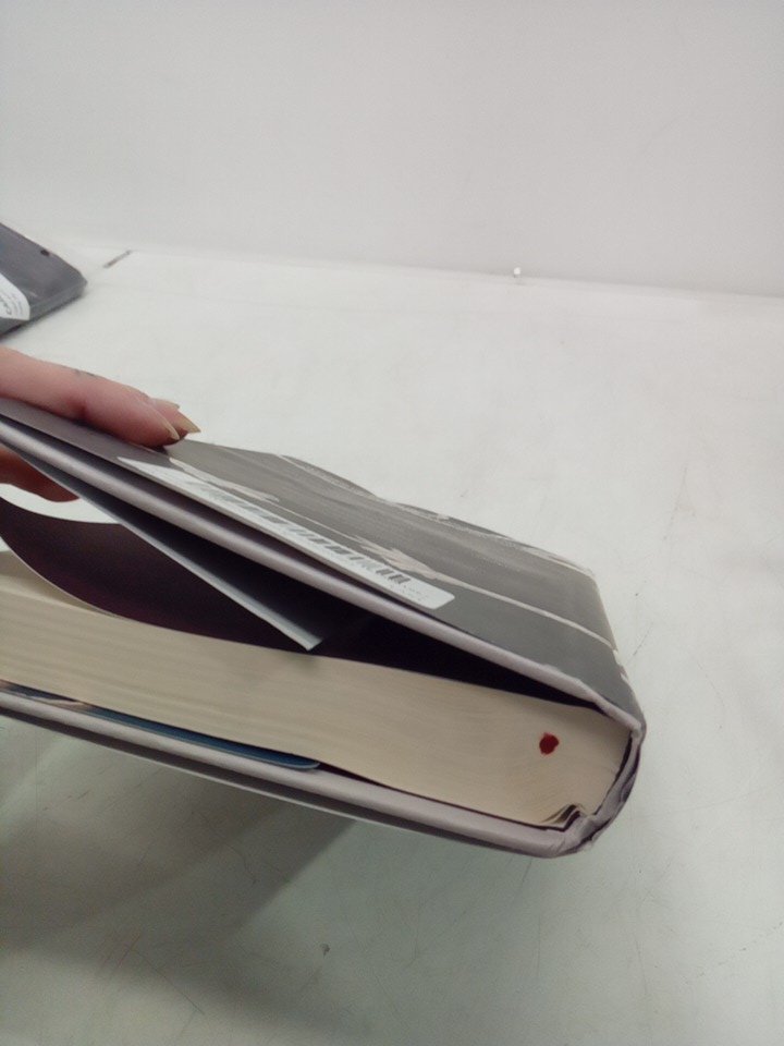 the book is dented from shipping, and there is a red mark on the paper. see photos.