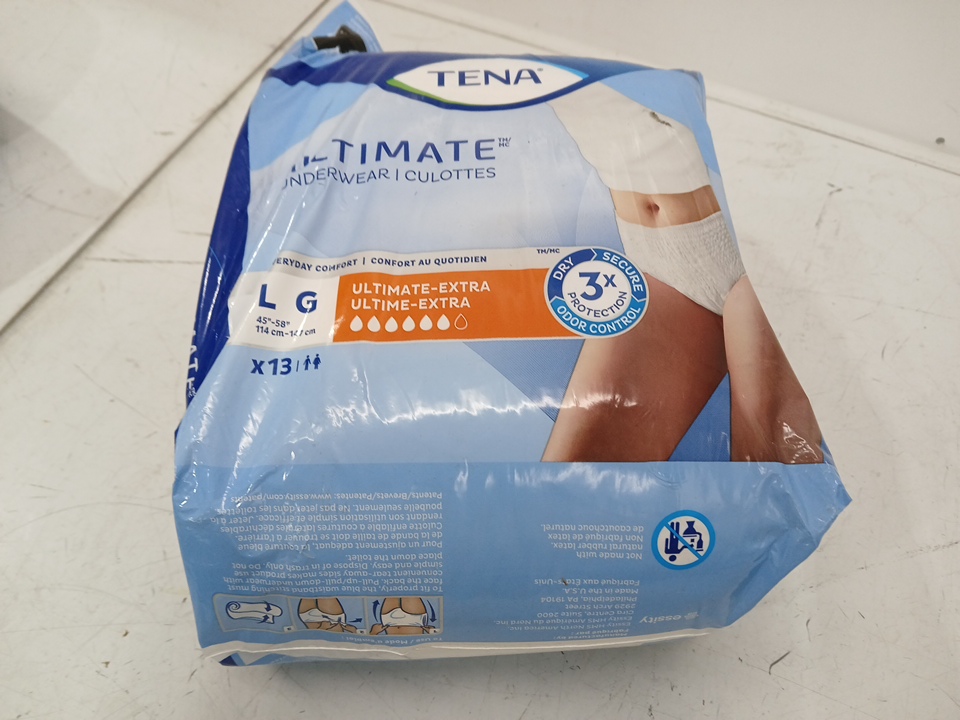 13pk adults UNISEX TENA ULTIMATE 3X EXTRA DRY & ODOR PROTECTION UNDERWEAR - LARGE (45" - 58") (MODEL: 072323)
