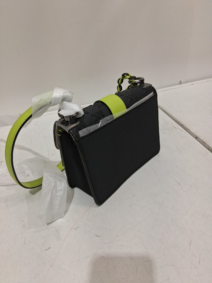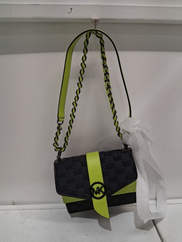 Michael Kors Signature Fabric and Leather Small Greenwich Shoulder Bag - black/green