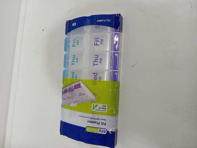EZYDOSE WEEKLY AM/PM PILL ORGANIZER WITH LARGE COMPARTMENTS AND PUSH BUTTONS- clear/pink/blue