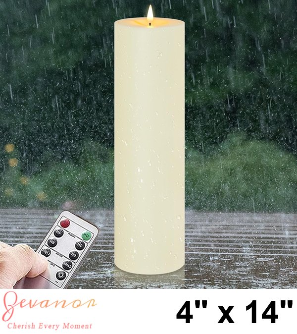 ZEVANOR Flameless LED Waterproof Remote Pillar Candles WITH Timer - 4" X 14" - IVORY