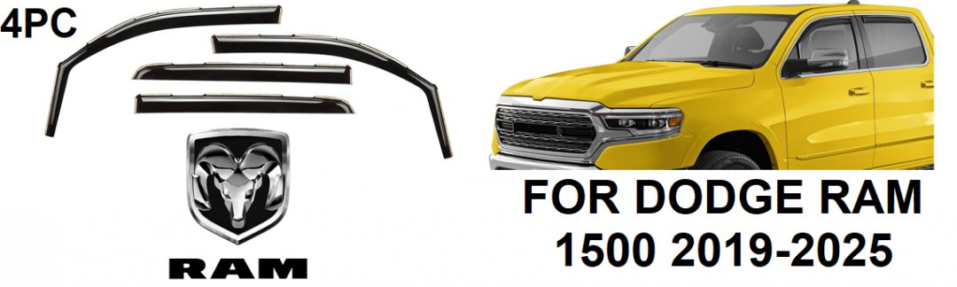 4pc AEROGUYS in-Channel Window Deflectors Extra Durable rain guards for dodge ram 1500 2019 - 2025 - black (model:AG0326)