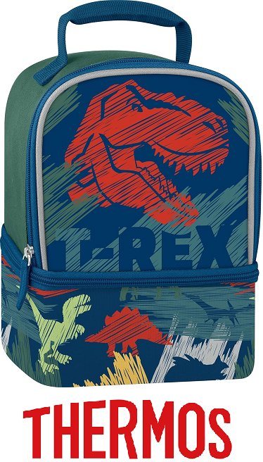 KIDS THERMOS Dual Compartment Lunch Box with LDPE - T-REX/Dinosaurs BLUE/GREEN (MODEL:N323035006L)