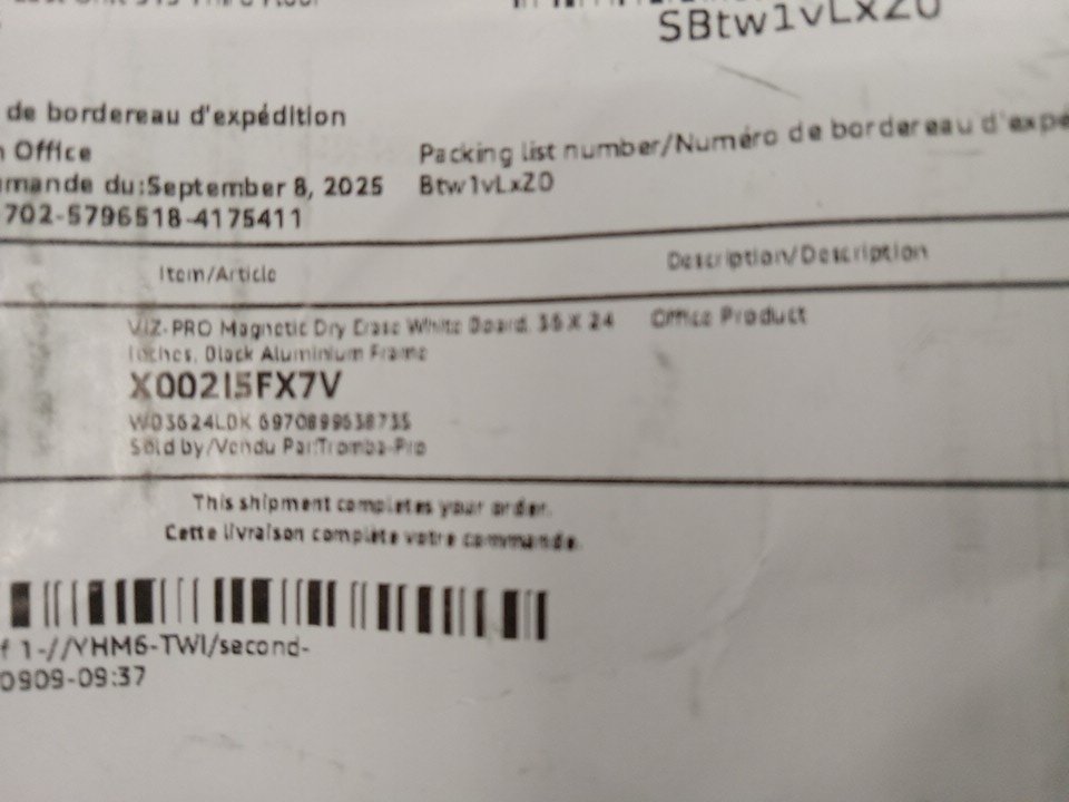 Viz-pro magnetic dry erase white board - 36" x 24" - black/white - (model: wb3624lbk)