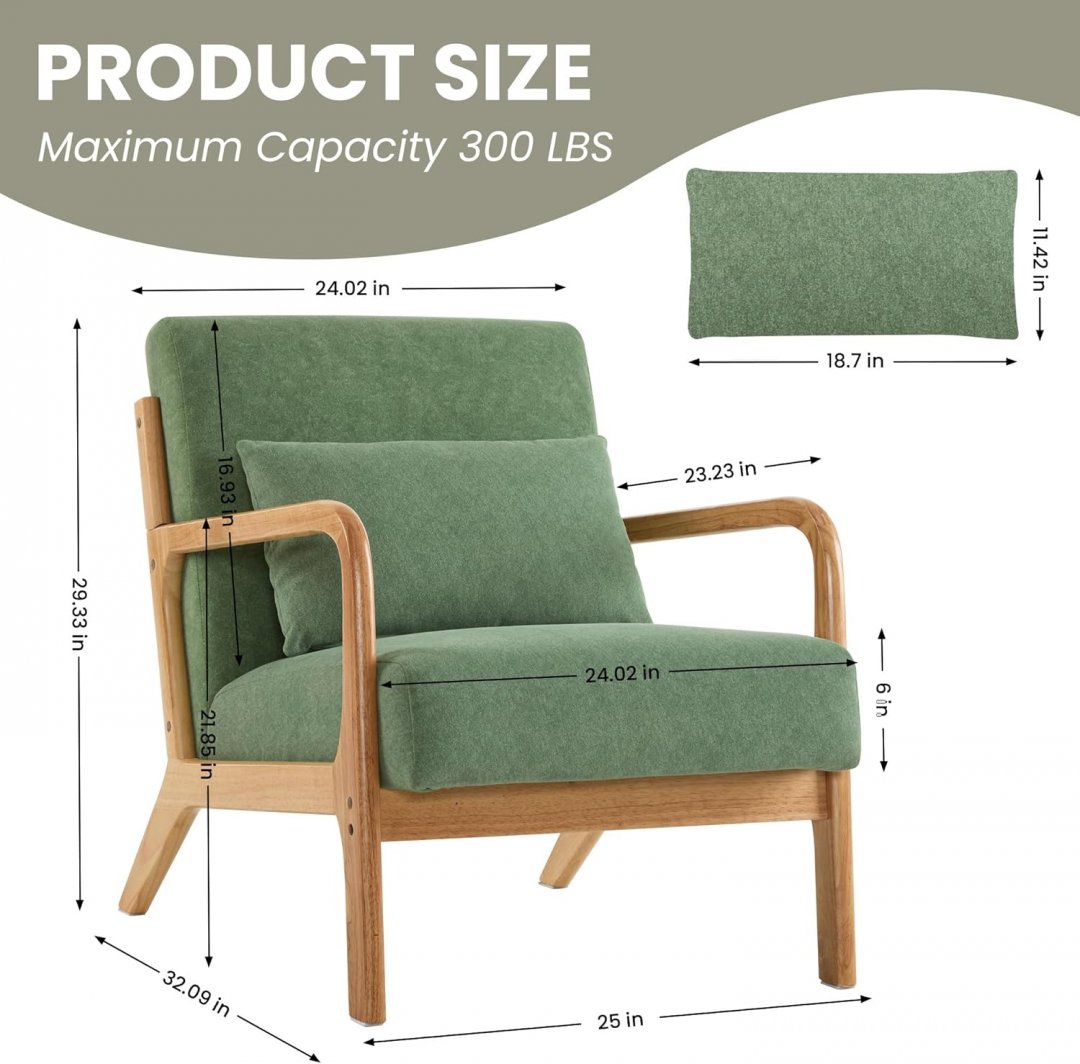 Aunekiv Modern Upholstered Mid-Century Accent Armchair with Pillow - 300LBS Cap - 29" x 24" x 23" - Green (Model: LC-12)
