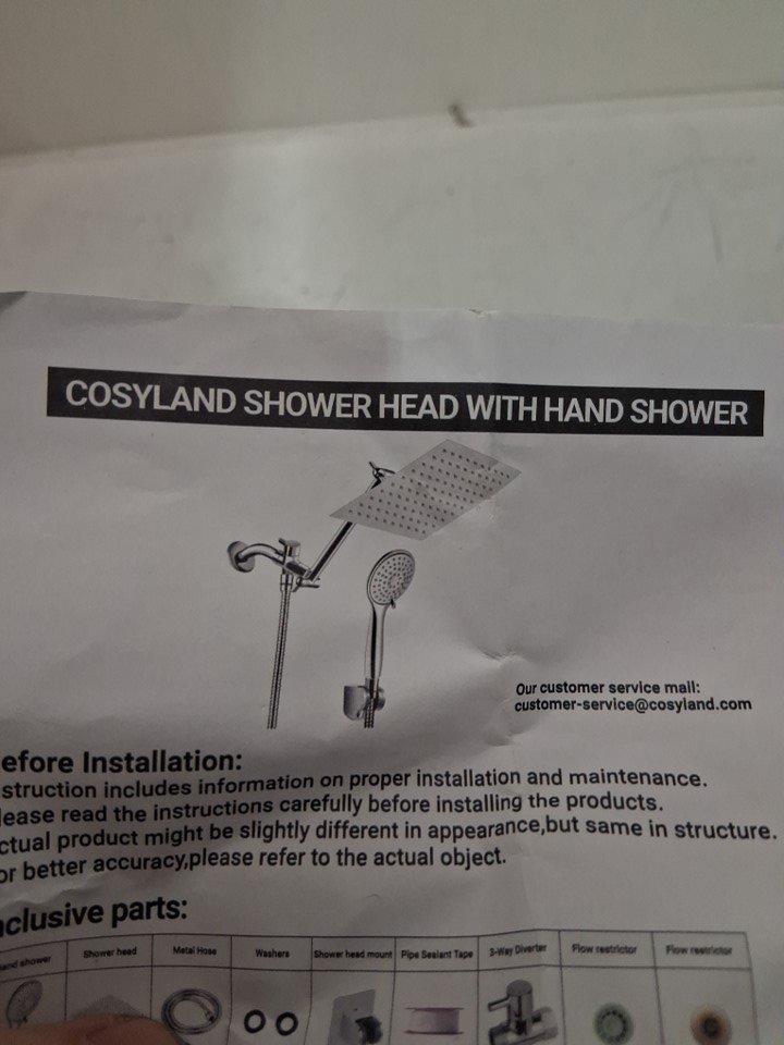 COSYLAND 8" RAINFALL STAINLESS STEEL FIXED SHOWER HEAD/HANDHELD WITH 9 SETTING SPRAYS KIT - chrome (model: ‎CS0086-1)