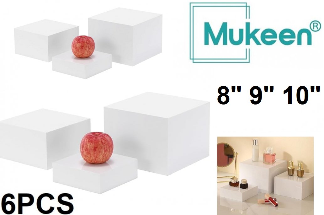 6PC acrylic catering display stand buffet risers with hollow bottoms - for food, parties, events, retail counters, display shelves, etc -- polished white