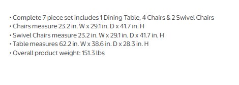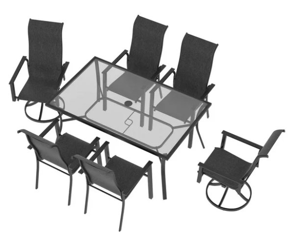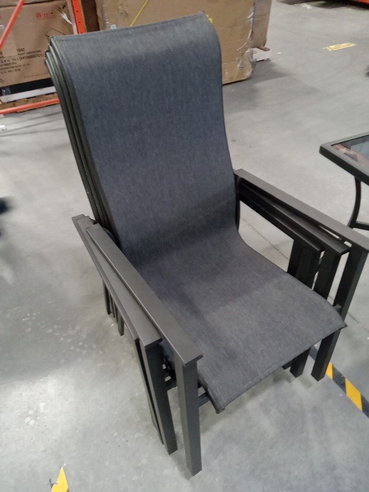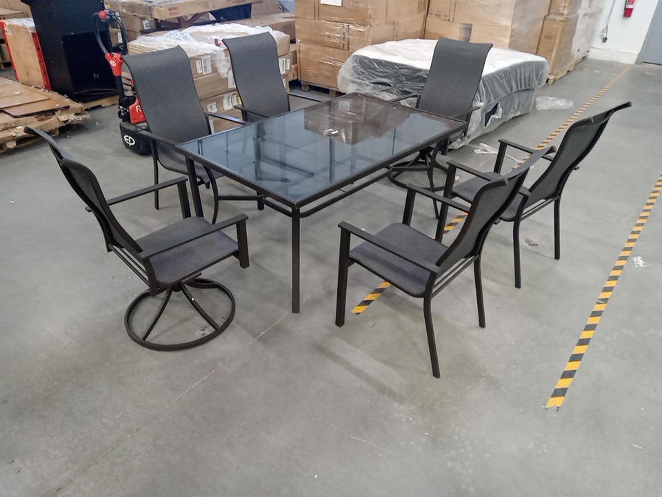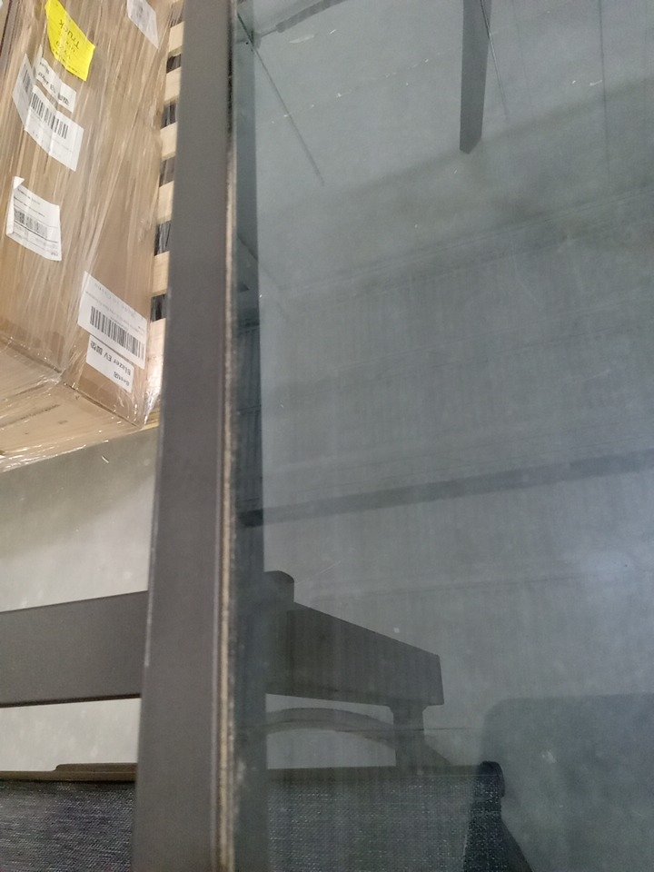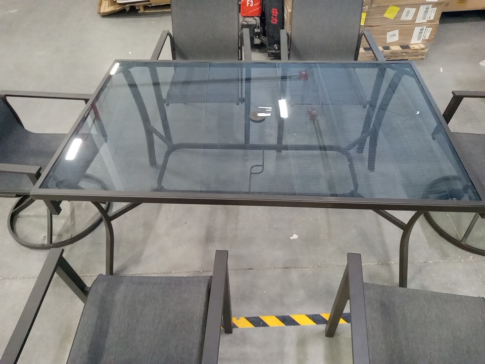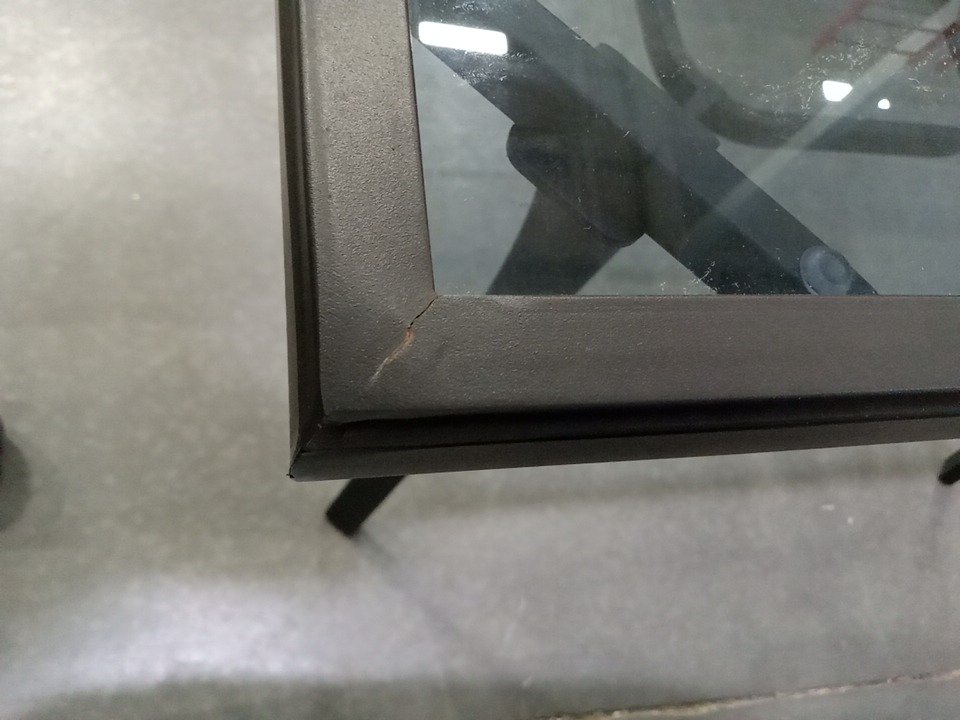 There are some scuffs, dirt marks, light corrosion and minor crack on one corner frame of dining table due to previous use. Note: Please bring appropriate vehicle and help at the time of pick up.