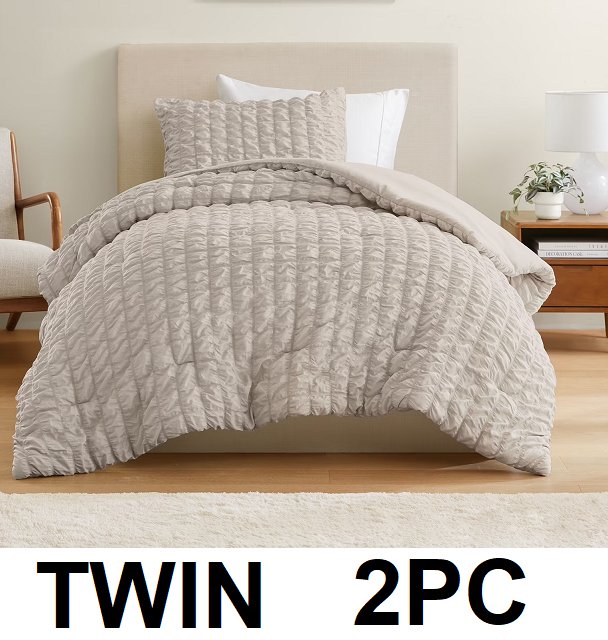 2pc Seersucker textured duvet cover Set - twin - stone/beige