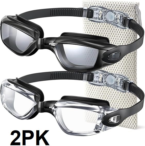 2pk Unisex Nssiw anti fog no leak swimming goggles - Adjustable - black