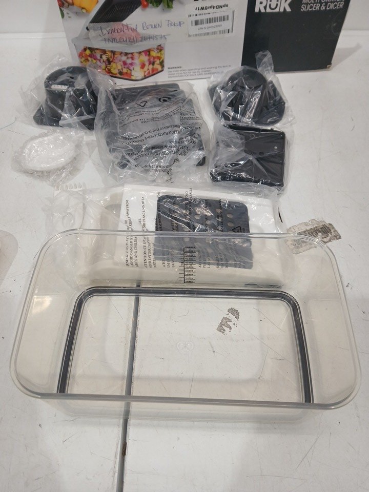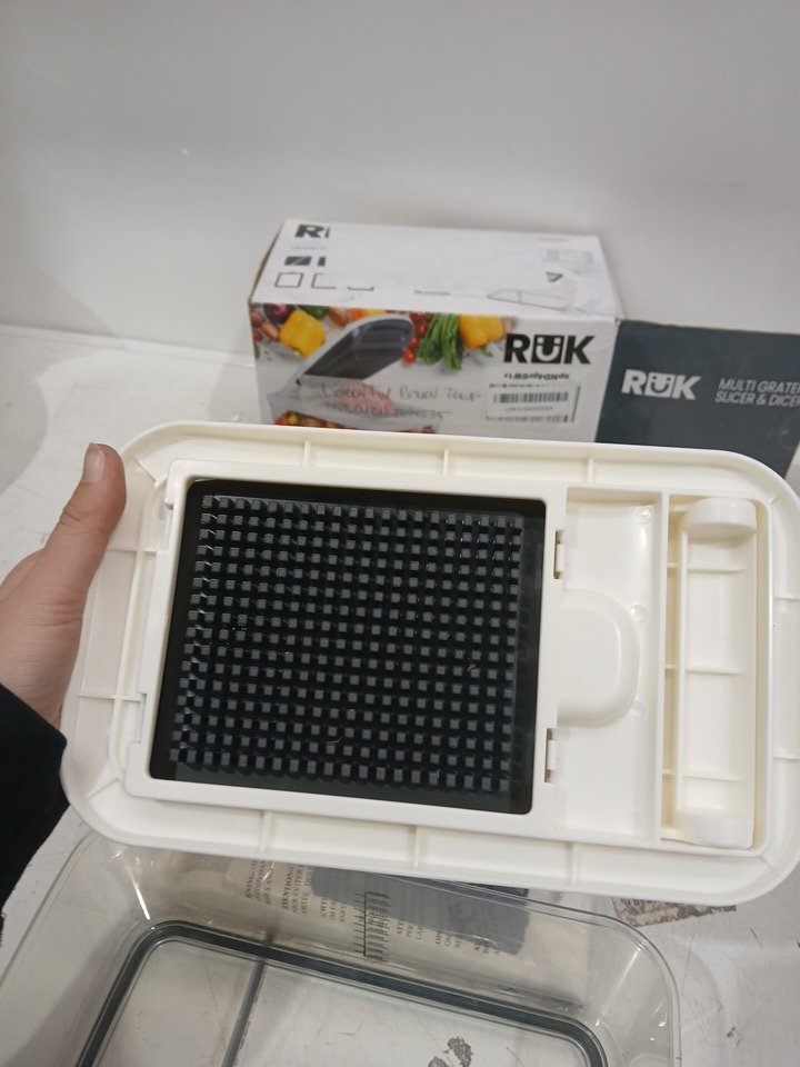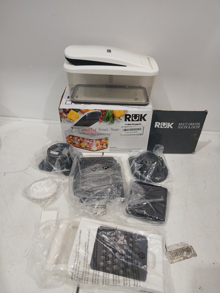RUK 10-in-1 extra large Vegetable Chopper with Multi-Grater, Slicer & Dicer - 2.6qt - 6 blades - 4 Vegetable Spiralizers - white/black (model: ‎RY-3LVC)