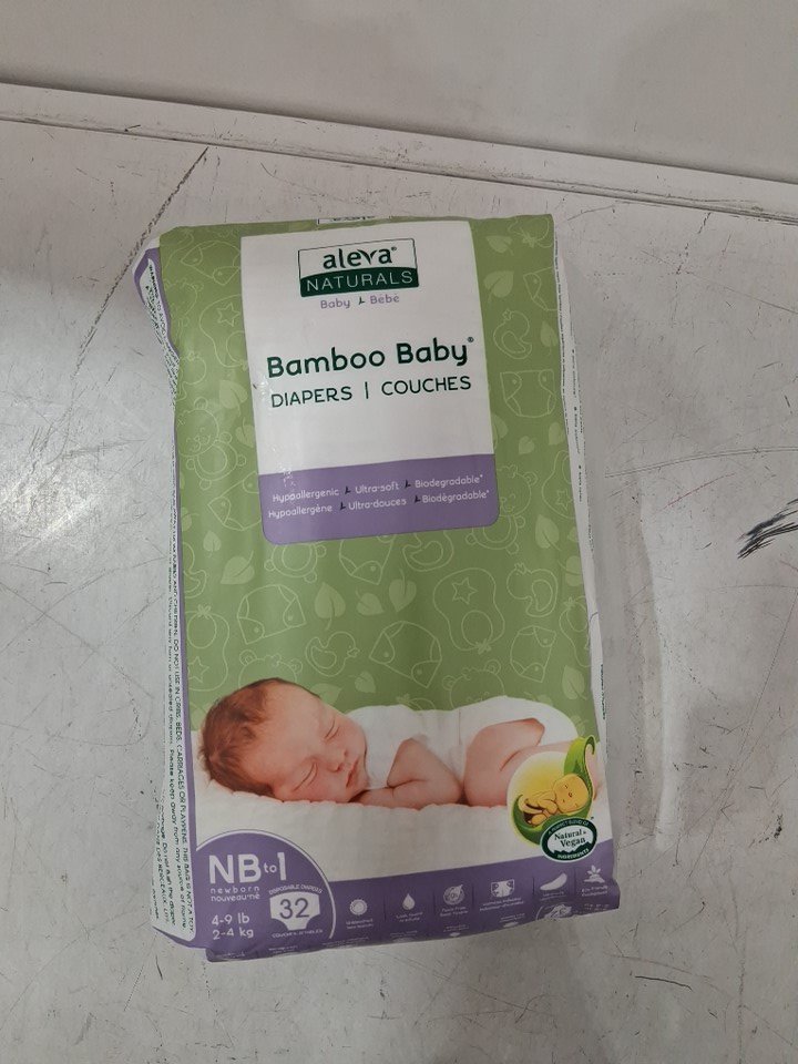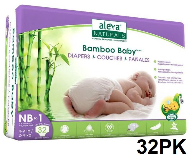 32PK ALEVA NATURALS BAMBOO BABY DIAPERS, HYPOALLERGENIC AND BIODEGRADABLE - NEWBORN TO SIZE 1