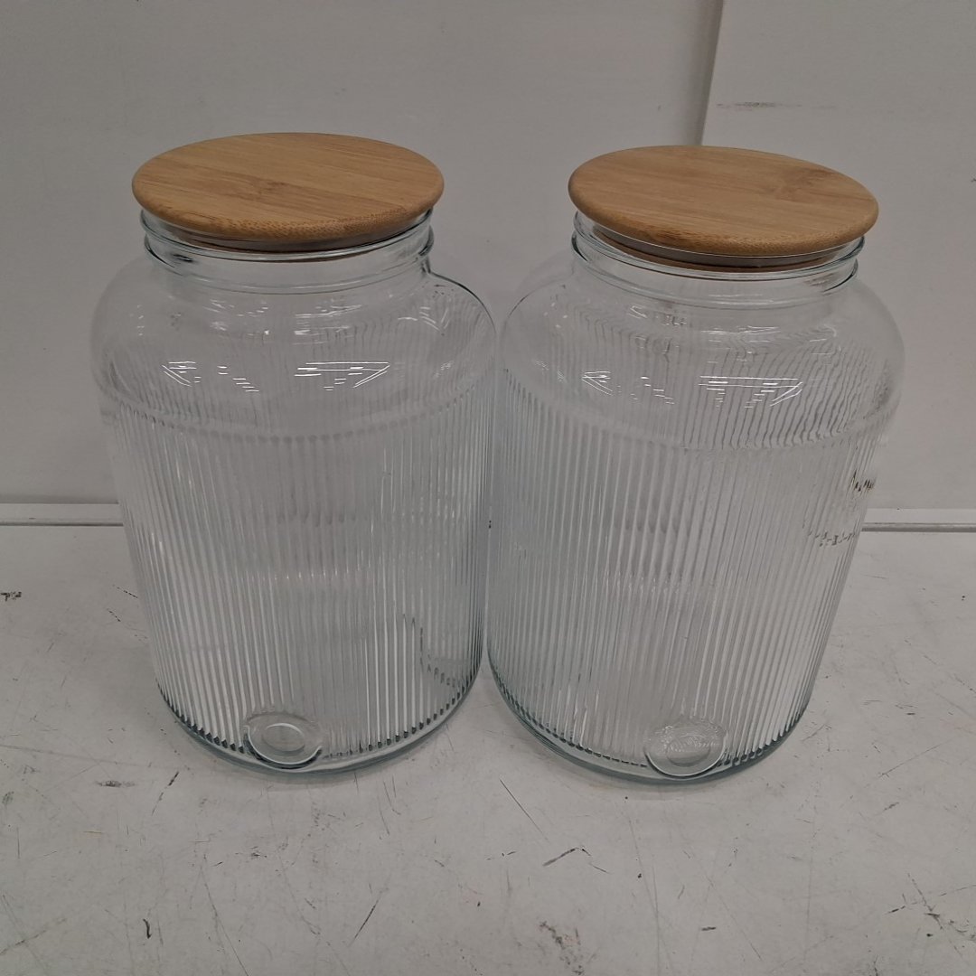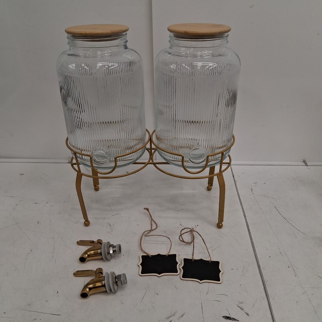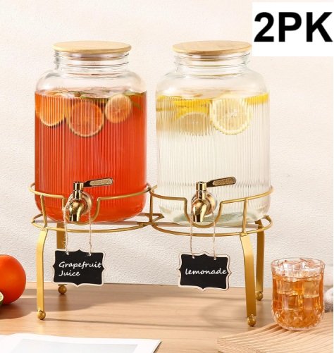 2pk ZJ Whoest Glass Drink Dispenser with Stand and Bamboo Lid - 1gal each - clear/gold