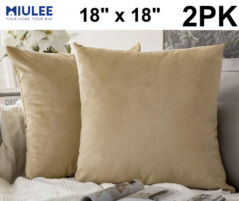 2PK miulee velvet soft square throw pillow covers cushion/pillowcases - 18"x18" - Khaki