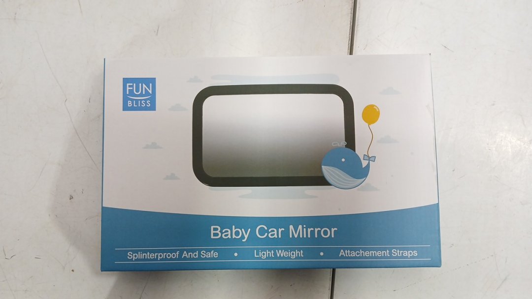 Funbliss Baby Shatterproof Car Mirror for rear facing car seats - 7" x 9.7" - black/silver