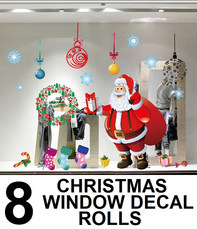 8 LONGTEN Removable Vinyl CHRISTMAS WINDOW DECAL STICKER ROLLS - MULTICOLORED