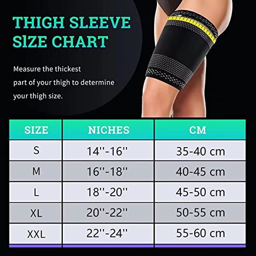 2PK ABYON THIGH COMPRESSION SLEEVES FOR HAMSTRING, QUAD AND GROIN PAIN RELIEF/RECOVERY - LARGE - BLACK/GREY.