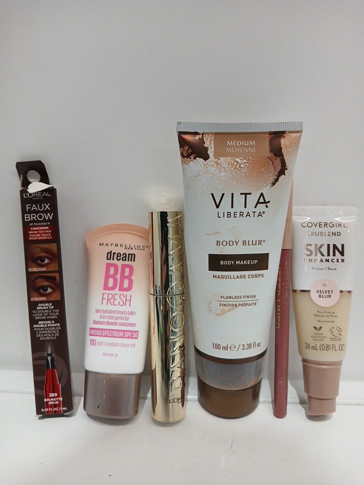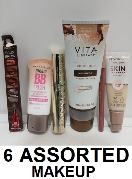 6 ASSORTED MAKEUP - ASSORTED BRANDS - bb cream/ body makeup/primer -/ mascara/ brow tint/ lip liner