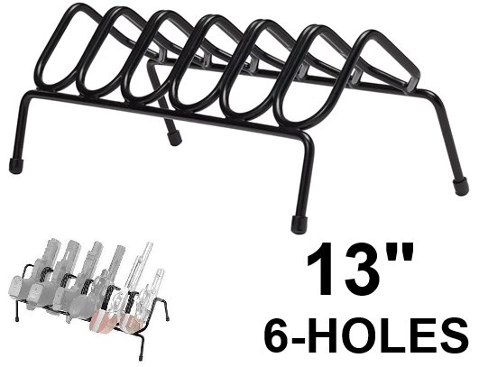 METAL HAND GUN RACK - Suitable for Range or Storage - 6 HOLES - 13" - BLACK
