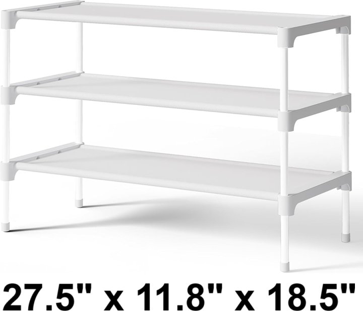 kitsure 3 tier metal non Woven Shoe Rack organizer - 27.5" x 11.8" x 18.5" - white (model: ki4122)