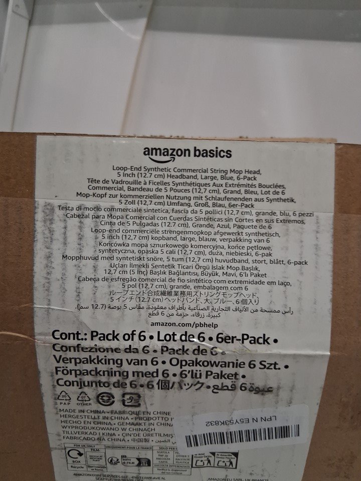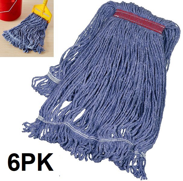 6PK AmazonBasics Loop-End Synthetic Commercial String Mop Head - 5", 1.25" Headband - Blue