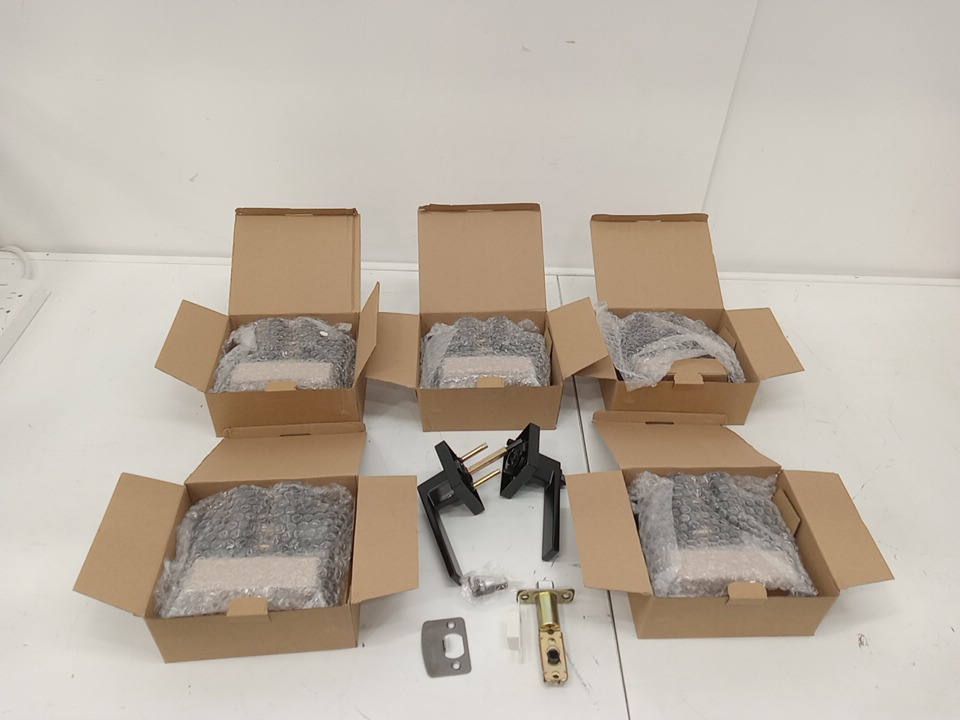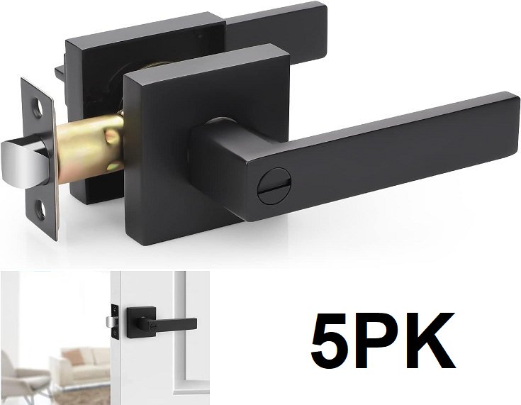 5pk lever style modern square turn-thumb locking door knobs - matte black (model: ms01)