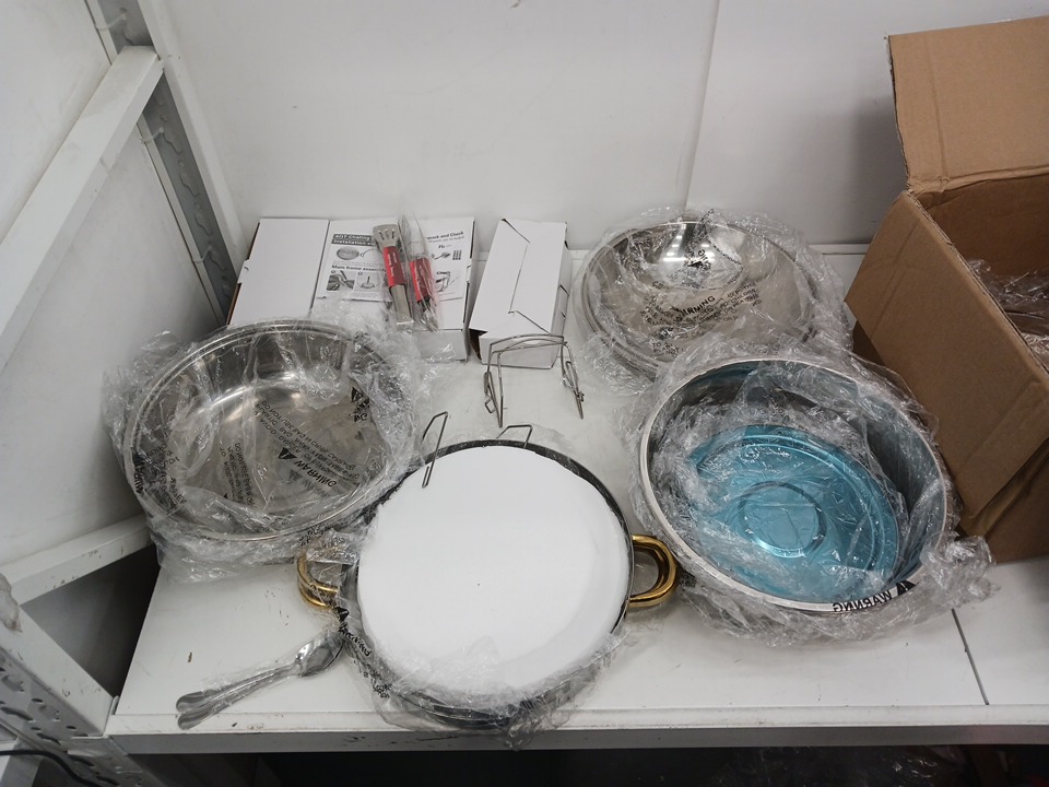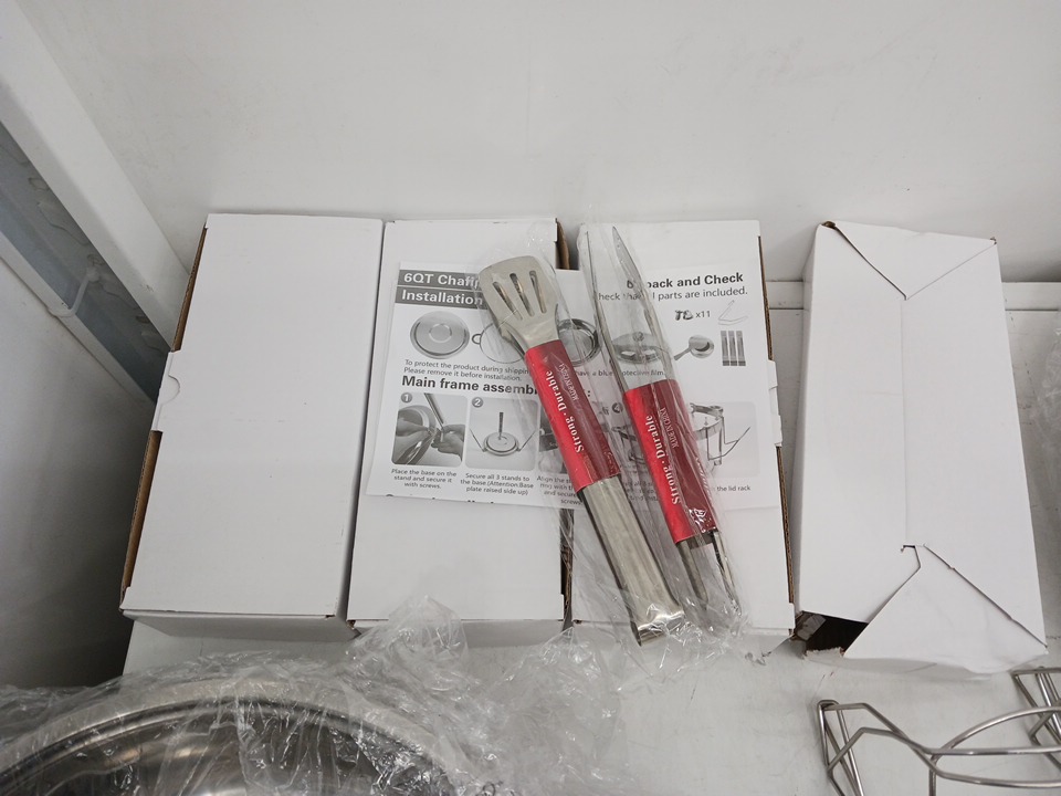 4PK BEVILIU 6QT Round Chafing Dishes with Lids, Pans, Fuel Holders, Spoons, and Tongs, Durable Heat-Retaining Construction, Smooth Safe Edges, Easy 3-Step Assembly - Silver