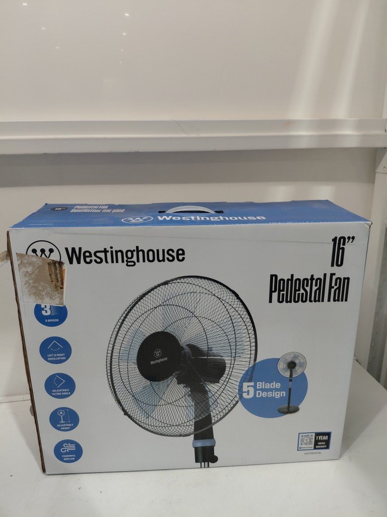 westinghouse adjustable height oscillating pedestal fan - 16" - black/blue (model: WSFSB1601BU)